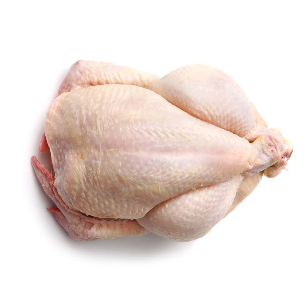 Le poulet préparé pèse en moyenne 1,8 kg et est vendu entier.