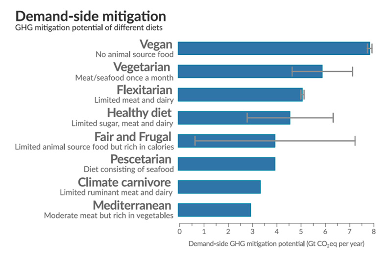 Par ailleurs, il est intéressant de relever qu’une étude du GIEC (groupe d’experts intergouvernemental sur l’évolution du climat) démontre qu’une limitation de la consommation de viande (flexitarisme) permet de réduire autant les émissions de gaz à effet de serre qu’un régime végétarien (qui risque d’être enrichi en produits laitiers).